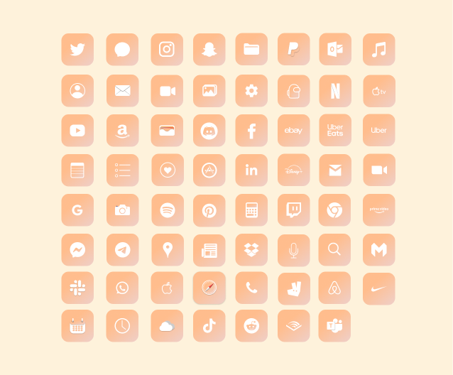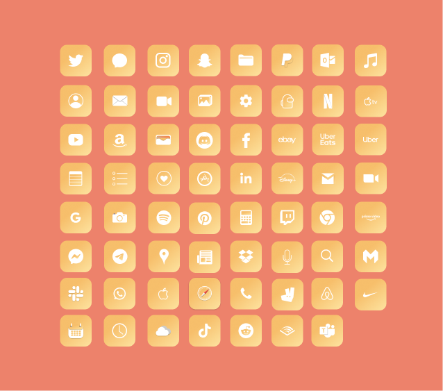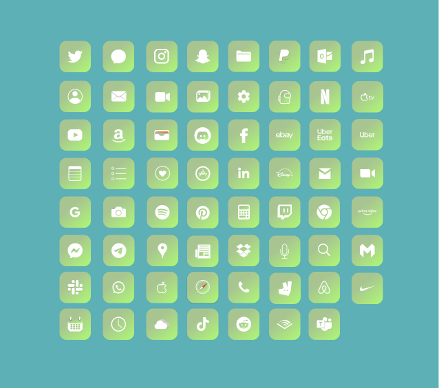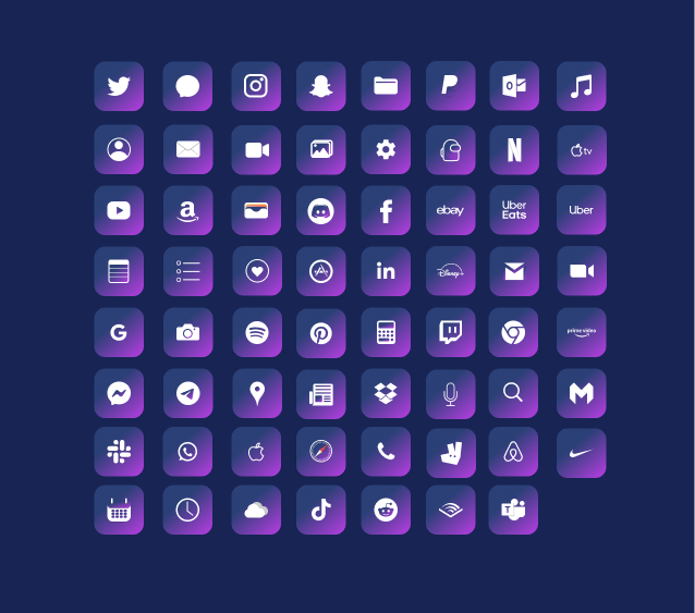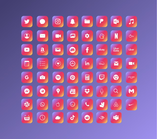 Custom designed liquid gradient icons for your iOS 14 (or later) home screen, with five different themes according to your taste. Instructions included. High resolution.